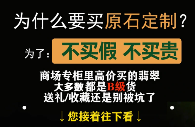我也是以翡翠為生的,祖輩都是老實人,我也知道用真誠才能打動人,否側是走不長久的,所以跟大家說實話。我能做的就是從原石到成品,都是自己的工廠加工,再到消費者不存在中間商,讓利給消費者,做長久生意。這就是在商場賣幾萬的翡翠,在我這裡幾千就能買到的原因。只要您有什麼關於翡翠的問題,我都會耐心解答,因為我是本著交朋友的心態,有需要鑑定的